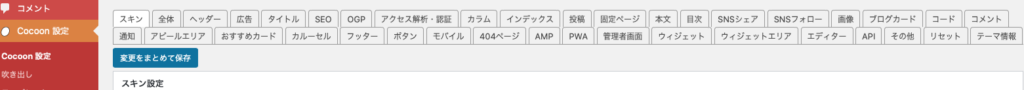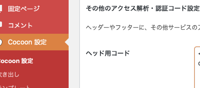 wordpressに戻って、ウジェットのCocoonの設定をクリック